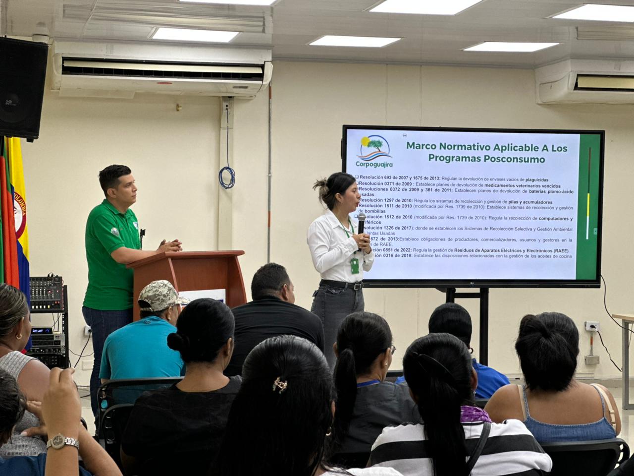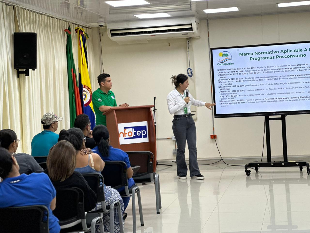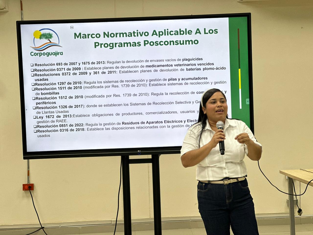 Dictada por Corpoguajira, la capacitación fortaleció los conocimientos de la comunidad institucional sobre la gestión adecuada de residuos posconsumo como pilas, luminarias y medicamentos. Se promovió la responsabilidad compartida y el cumplimiento de la normatividad ambiental vigente.